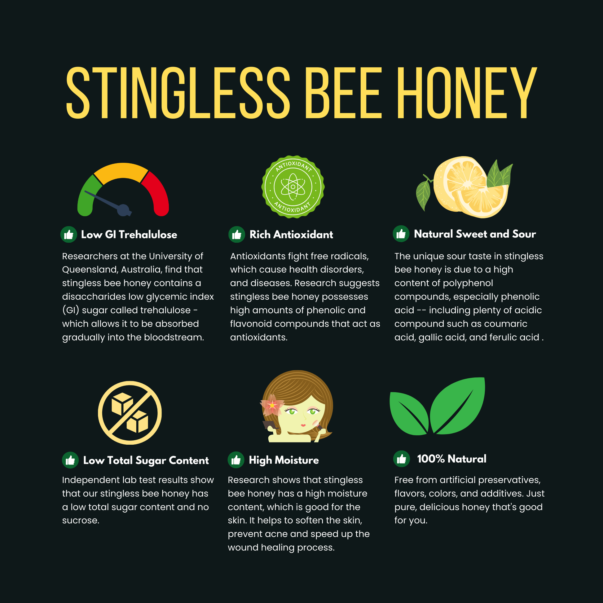 Unlike regular honey, stingless bee honey offers exceptional taste and rare health benefits: